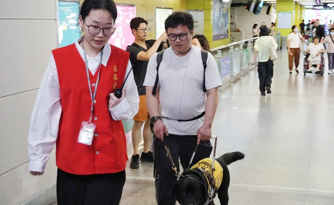 導(dǎo)盲犬作為服務(wù)犬可陪同進(jìn)站。圖源:廣州殘聯(lián)