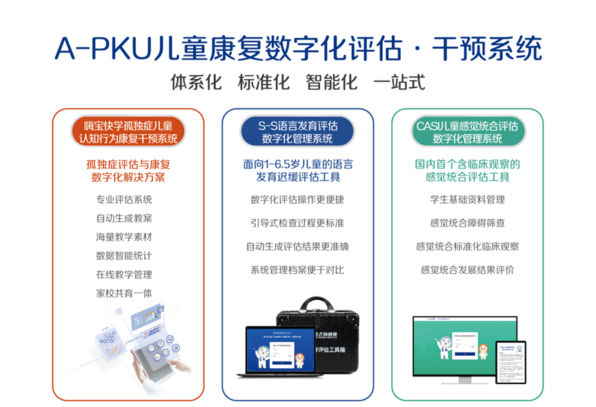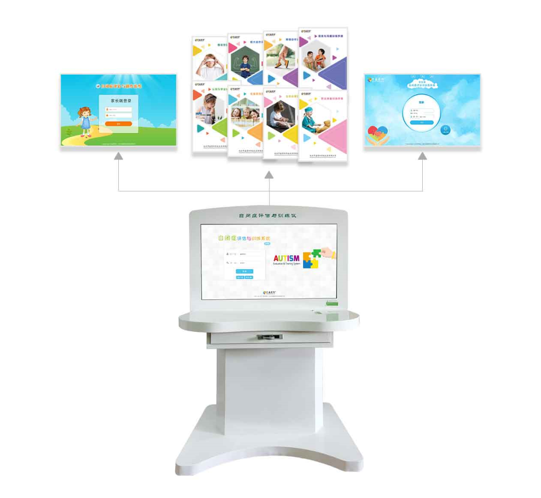 孤獨癥評估與康復系統(tǒng)由數(shù)字康復管理平臺(醫(yī)療級推車)及多臺康復終端設備組成,適用于孤獨癥譜系障礙及相關發(fā)育障礙患者的篩查、評估和康復治療。本系統(tǒng)搭載了一系列專業(yè)的篩查評估工具,創(chuàng)新性地采用“基于測評結果智能匹配個別化康復計劃”的解決方案,契合并滿足了高效評估、臨床康復、居家訓練、康復管理等場景的需求,切實提升了康復服務的效率和效果。