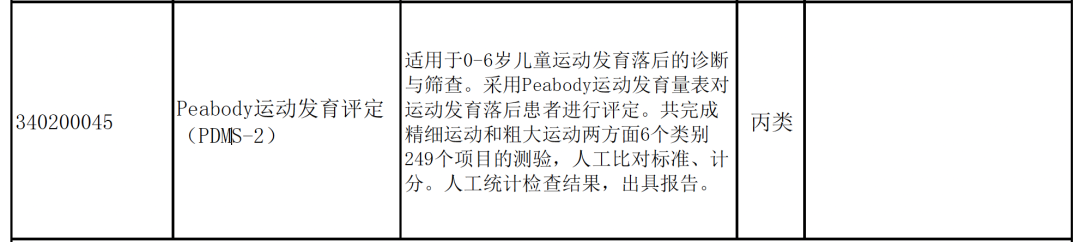 河南也將構(gòu)音障礙、職業(yè)能力評定、職業(yè)功能訓(xùn)練等放進(jìn)了基本醫(yī)保的康復(fù)類目錄。同時將Peabody運動發(fā)育評定也納入了醫(yī)保。