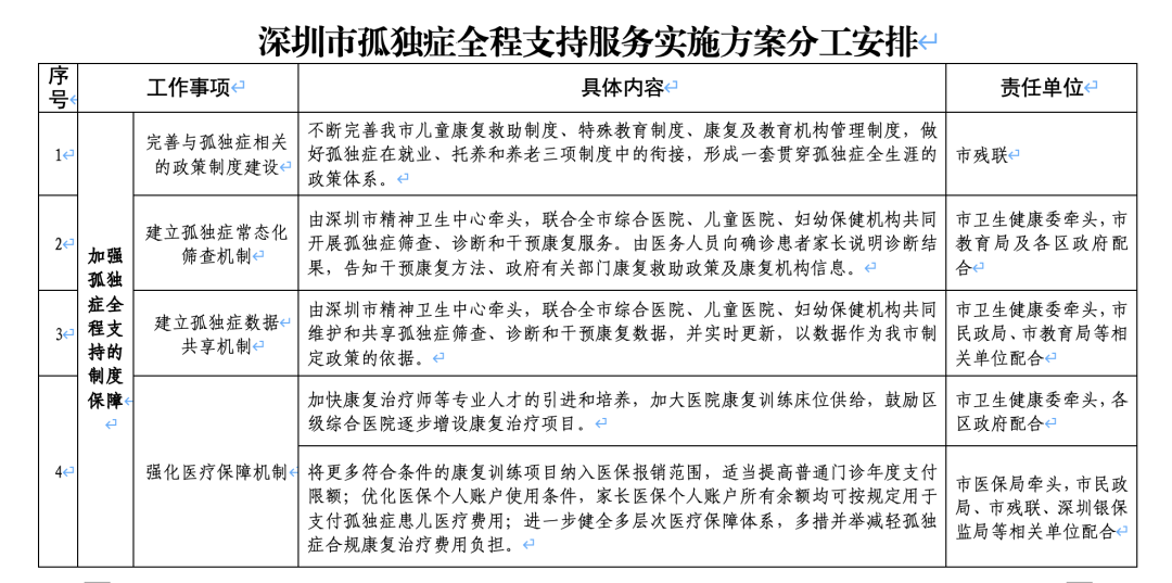 在此之前,深圳市已于2023年10月印發(fā)《深圳市孤獨癥全程支持服務(wù)實施方案》,提出六大方面31項工作任務(wù),希望實現(xiàn)的工作目標(biāo)是: