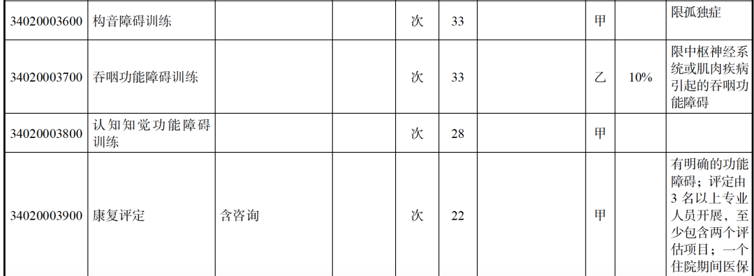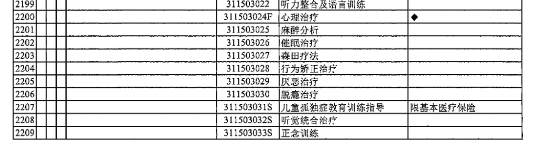 這29個項目,都規(guī)定了對應(yīng)的支付范圍。其中,明確與自閉癥相關(guān)的項目是ADI測評,言語訓(xùn)練、認(rèn)知訓(xùn)練和作業(yè)療法等在部分地區(qū)也是自閉癥醫(yī)療康復(fù)服務(wù)的內(nèi)容。