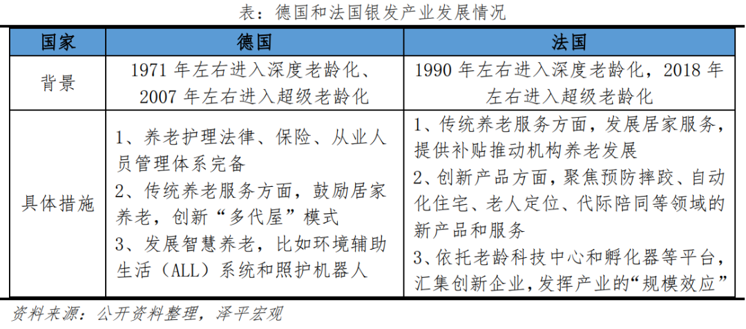 2)法國于1990年左右進(jìn)入深度老齡化社會,2018年左右進(jìn)入超級老齡化社會,隨著老齡化加速,政府養(yǎng)老負(fù)擔(dān)加重,2020年養(yǎng)老金缺口高達(dá)180億歐元。面對老齡化疊加高福利陷阱,法國政府開始扶持老年相關(guān)行業(yè),發(fā)展“銀發(fā)經(jīng)濟(jì)”。