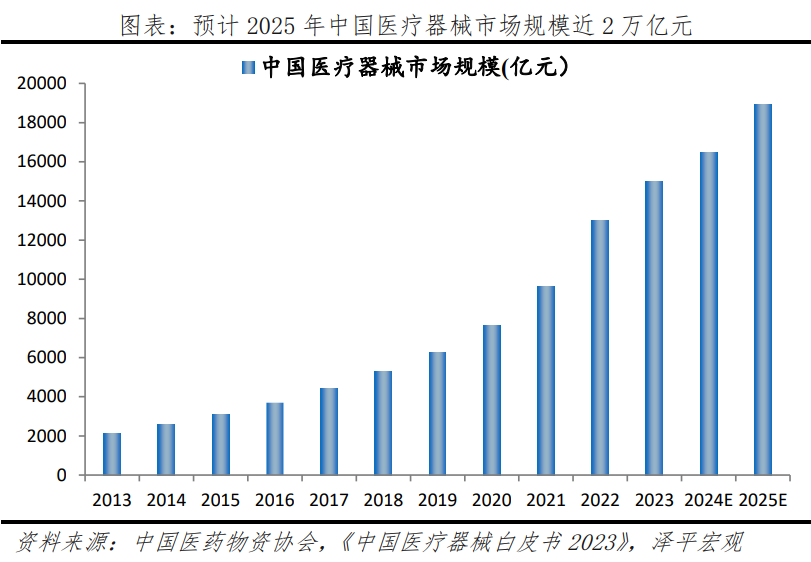 老齡化來臨,醫(yī)保體制日益健全,人均醫(yī)療保健消費(fèi)支出和衛(wèi)生費(fèi)用保持增長,眼科、心血管、骨科、口腔等醫(yī)療器械迎來機(jī)遇。在國家產(chǎn)業(yè)政策的支持和醫(yī)療衛(wèi)生體制改革的推動下,醫(yī)療器械行業(yè)呈現(xiàn)出長期穩(wěn)定增長的需求趨勢。據(jù)中國醫(yī)藥物資協(xié)會數(shù)據(jù),2022年中國醫(yī)療器械行業(yè)的市場規(guī)模約為1.3萬億元,預(yù)計(jì)到2025年將接近2萬億元。醫(yī)療器械行業(yè)中游細(xì)分產(chǎn)品包括高端植介入耗材、低端醫(yī)用耗材、醫(yī)療設(shè)備和體內(nèi)診斷等。隨著老齡化到來、醫(yī)保體制日益健全、人均醫(yī)療保健消費(fèi)支出和衛(wèi)生費(fèi)用保持快速增長等,眼科、心血管耗材、骨科、口腔耗材等與中老年息息相關(guān)的醫(yī)療器械迎來新機(jī)遇。具體來看: