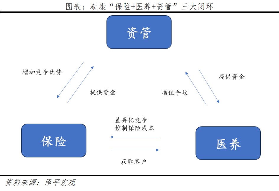 泰康通過跨界醫(yī)養(yǎng)產(chǎn)業(yè)布局,實(shí)現(xiàn)虛擬保險(xiǎn)產(chǎn)品與實(shí)際醫(yī)養(yǎng)服務(wù)結(jié)合,構(gòu)建“保險(xiǎn)+醫(yī)養(yǎng)+資管”三大閉環(huán)。泰康之家定位于高端養(yǎng)老服務(wù),致力于打造“都市醫(yī)養(yǎng)社區(qū)”??蛻敉ㄟ^購買泰康指定的養(yǎng)老保險(xiǎn)產(chǎn)品,可在泰康的養(yǎng)老體系中享受養(yǎng)老服務(wù);通過購買健康保險(xiǎn)產(chǎn)品,可在泰康的醫(yī)療健康體系中獲得醫(yī)療服務(wù);資產(chǎn)管理則為客戶的健康和養(yǎng)老需求儲備物質(zhì)財(cái)富。通過閉環(huán)整合,泰康之家有效控制保險(xiǎn)成本,提升保險(xiǎn)產(chǎn)品的市場競爭力。
