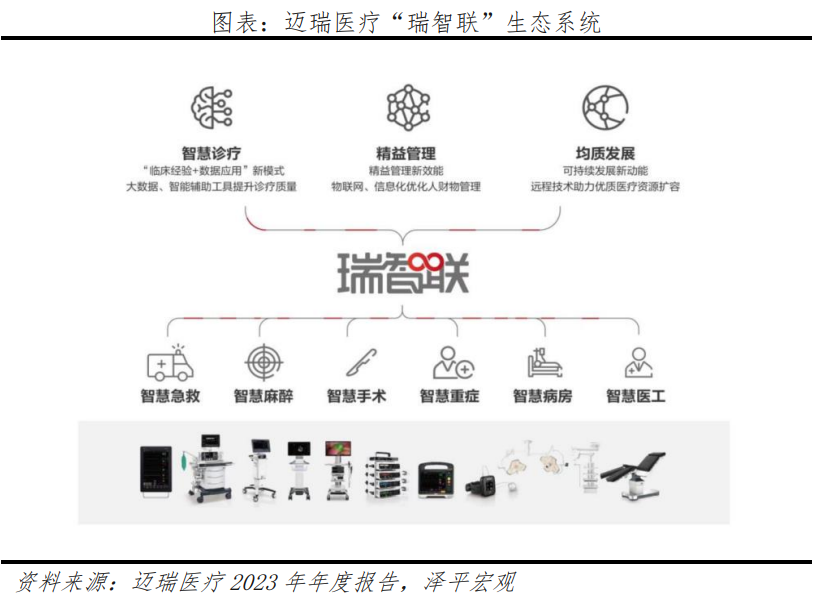 多元發(fā)展構(gòu)筑戰(zhàn)略縱深。1)2024年1月,收購惠泰醫(yī)療,快速進(jìn)入電生理和血管介入等高值耗材領(lǐng)域。2)基于領(lǐng)先的腔鏡平臺,加速提升耗材市場份額,邁瑞在“設(shè)備+耗材”品類有較強(qiáng)的優(yōu)勢和研發(fā)基因。3)拓展動物醫(yī)療,面向不同動物以及應(yīng)用場景,建立體外診斷、生命信息與支持、醫(yī)學(xué)影像技術(shù)研究平臺。