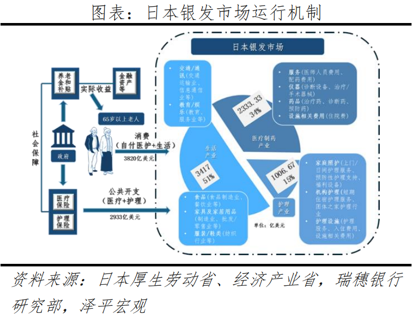 日本在1994年進(jìn)入深度老齡化、2005年進(jìn)入超級老齡化社會,老齡化趨勢和逐漸完善的社保體系推動老年護(hù)理、健康管理和文娛等需求增長,激發(fā)銀發(fā)經(jīng)濟(jì)發(fā)展?jié)摿Α?/strong>