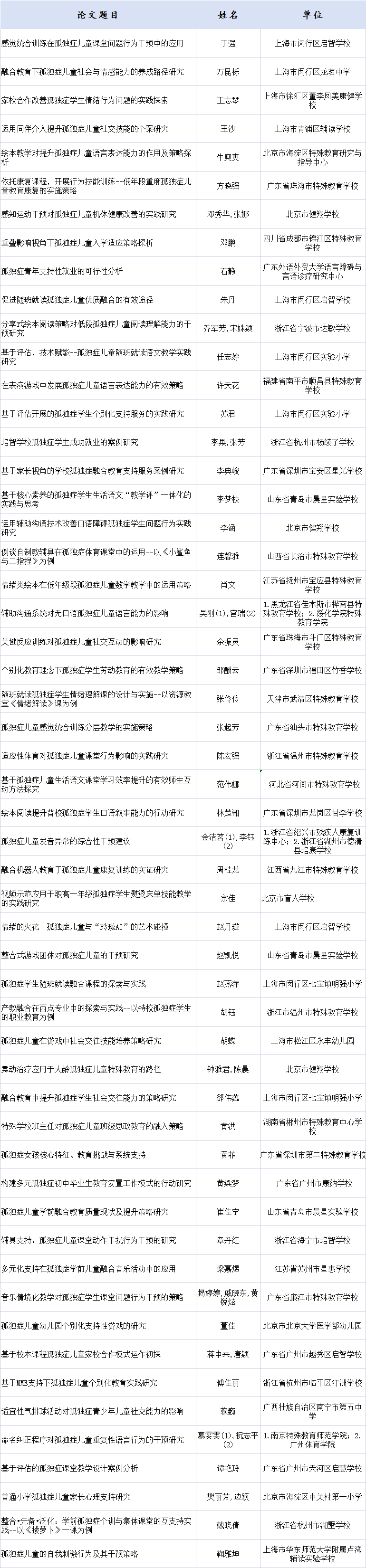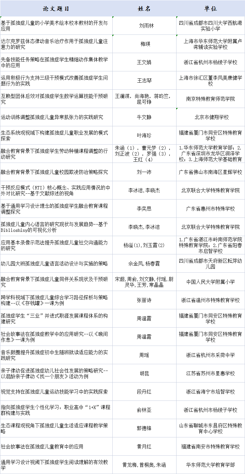 為貫徹落實黨的二十屆三中全會和全國教育大會精神,深入實施《“十四五”特殊教育發(fā)展提升行動計劃》《孤獨癥兒童關(guān)愛促進行動實施方案(2024-2028年)》,大力開展孤獨癥兒童教育研究,積極推動特殊教育教師專業(yè)能力提升,融合教育高質(zhì)量發(fā)展交流會暨第一屆孤獨癥兒童教育教學(xué)優(yōu)秀論文與課例征集結(jié)果發(fā)布儀式11月28日在北京國家會議中心舉行。