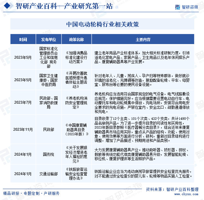中國政府高度重視老年人福祉和康復(fù)輔助器具產(chǎn)業(yè)的發(fā)展,相繼出臺了一系列政策,旨在推動產(chǎn)業(yè)創(chuàng)新和升級。這些政策不僅提供了稅收優(yōu)惠、資金補貼等激勵措施,還鼓勵了金融機構(gòu)和社會資本對電動輪椅行業(yè)的投資,促進了行業(yè)技術(shù)進步和市場擴大。政府的這些舉措為電動輪椅行業(yè)的發(fā)展提供了良好的政策環(huán)境和資金支持。