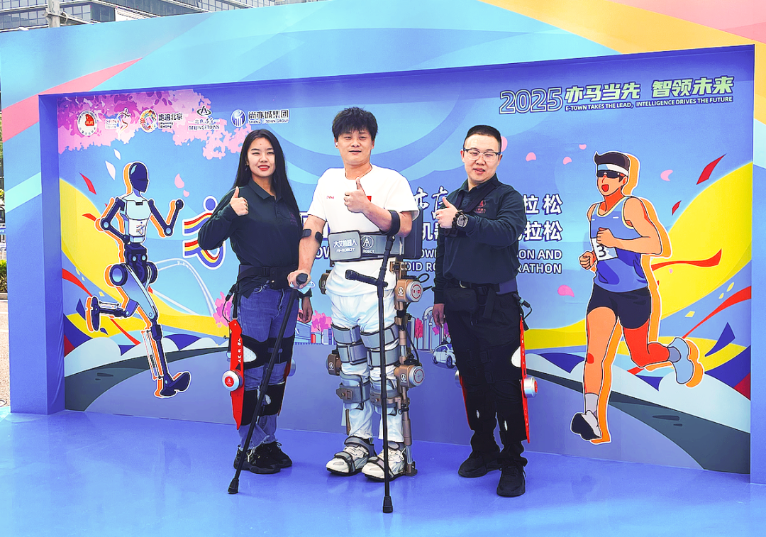 例如在2017年因高空墜落而導(dǎo)致截癱的邵海朋,便穿戴著大艾研發(fā)的外骨骼機器人完成了一場全程馬拉松,并打破了世界記錄。2025年4月19日,邵海朋也穿戴著艾動外骨骼機器人來到了全球首屆“人機共跑”半馬的現(xiàn)場,并以站立的姿態(tài)為參賽選手加油。