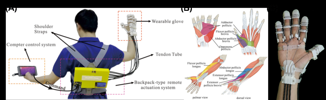 目前,國內(nèi)高校也在柔性外骨骼機器人的研究上有所進展,例如中國科學(xué)院沈陽自動化研究所科研人員便面向手部康復(fù),設(shè)計出了一款具有靈巧操作能力的柔性手部外骨骼機器人,突破了以往柔性手部外骨骼機器人只能實現(xiàn)簡單的抓握輔助,而通常無法恢復(fù)人體手部運動靈巧性的問題。