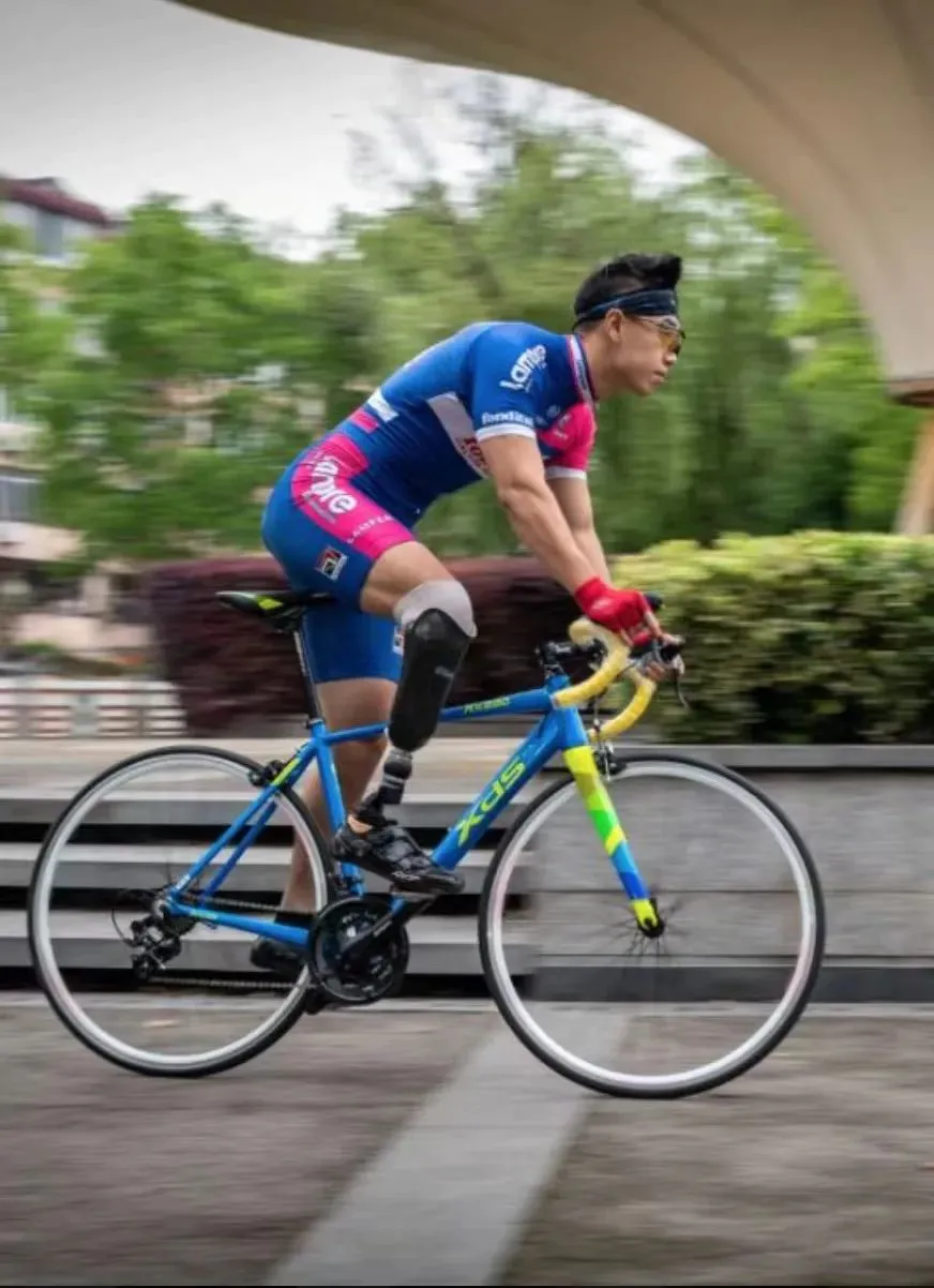康復(fù)后,他瞞著家人報名參加了一場環(huán)青海湖騎行——確實會遇到些麻煩,比如一出汗就會讓假肢的接受腔變得不爽利,但時不時停下來擦一擦就好了,這不是什么阻礙他的理由。