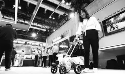 “繞開障礙啦,真棒!”視障人士王阿姨摸了摸“導(dǎo)盲犬小路”的頭,鼓勵(lì)它說,“帶我去展臺(tái)吧!”“導(dǎo)盲犬小路”隨即發(fā)出聲音:“好的,我將帶您去展臺(tái),請(qǐng)跟緊我。”