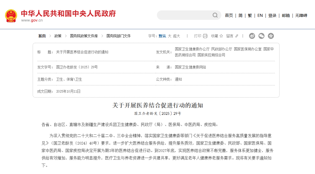 五部門發(fā)文:開展醫(yī)養(yǎng)結(jié)合促進(jìn)行動