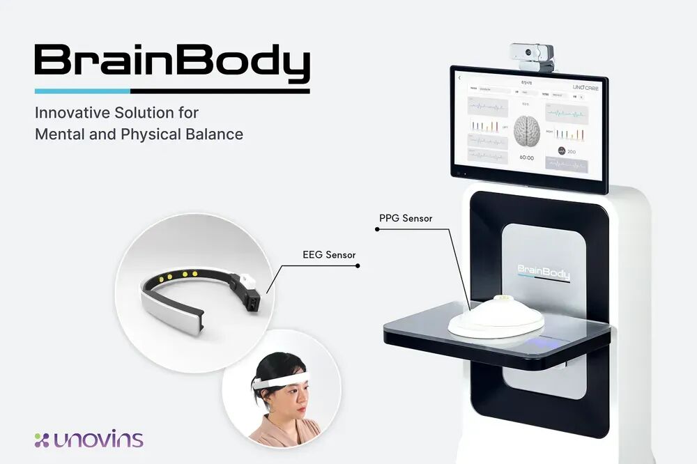 UNO BrainBody 是一款創(chuàng)新的一體化身心篩查系統(tǒng),集成了雙通道腦電圖與穹頂型光電容積描記傳感器,能夠在一分鐘內(nèi)同步完成腦電活動、心率變異性、軀體壓力與活力值等醫(yī)院級指標的快速評估,其篩查項目兼容韓國三項醫(yī)保報銷編碼,實現(xiàn)了高效、標準化的身心綜合檢測。設(shè)備配備面部識別登錄、平板操作界面及云端管理平臺,檢測結(jié)果可通過專屬應用“UNOCARE”查看歷史記錄并獲取個性化康復建議。未來還將引入AI解讀、個性化方案及新生物標志物開發(fā),目前已應用于韓國多家精神科、內(nèi)科及家庭診所。