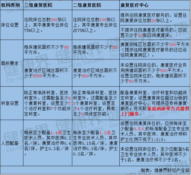 按照政策最低標準來算,設(shè)置住院康復(fù)醫(yī)療服務(wù)的,需要2名康復(fù)醫(yī)師、4名康復(fù)治療師、6名康復(fù)護士和若干名護理員。