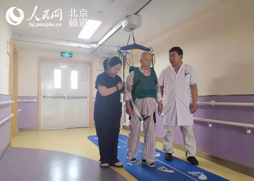 患者使用天軌轉(zhuǎn)運(yùn)設(shè)備進(jìn)行康復(fù)訓(xùn)練